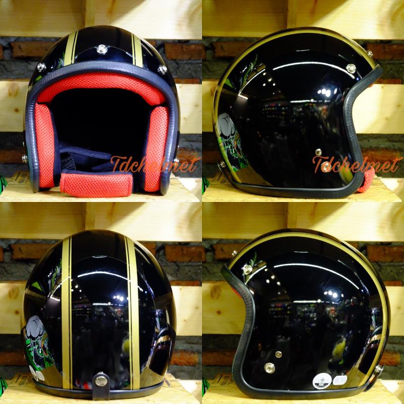 หมวกกันน็อคครึ่งใบ chopper -ผลิตจากวัสดุ ABS Hight impact มีความแข็งแรง และความเหนียวทำให้ ทนแรงกระแทกได้ดี -ภายในถอดซักได้ -น้ำหนักประมาณ650กรัม -มาตราฐาน มอก. -Freesize